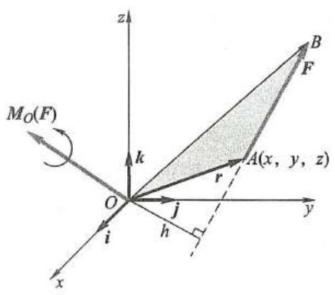 上式为力对点的矩的矢积表达式, 即力对点的力矩矢等于矩心到该力作用点的矢径与该力的矢积。
