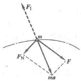 根据质点的达朗贝尔原理,这三力在形式上组成平衡力系,即