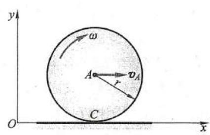 限制质点系运动情况的运动学条件, 称为运动约束。如图 4 所示, 车轮沿直线轨道做纯滚动,车轮除了受到限制其轮心 A 始终与地面保持距离为 r 的几何约束 {y}_{A} = r 外,还受到只滚不滑的运动学的限制, 即在每一瞬时, 有