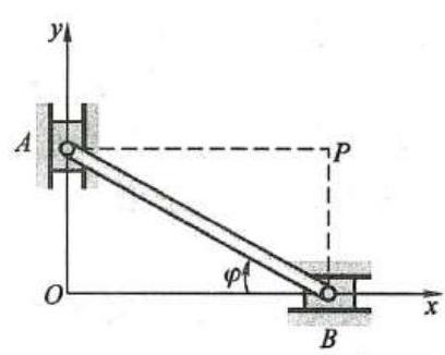 例 1 图 6 所示椭圆规机构中,连杆 {AB} 长为 l,在图示位置与水平线夹角为 \varphi,试求滑块 A\text{、}B 的一组虚位移。